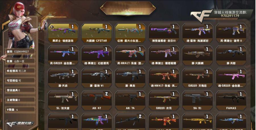 广东一区-53V-8王者武器数-2炫金武器数【热门武器】:王者白虎,M4A1-黑骑士,汤姆逊-烈